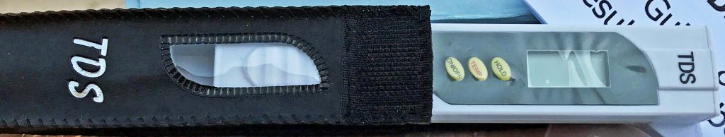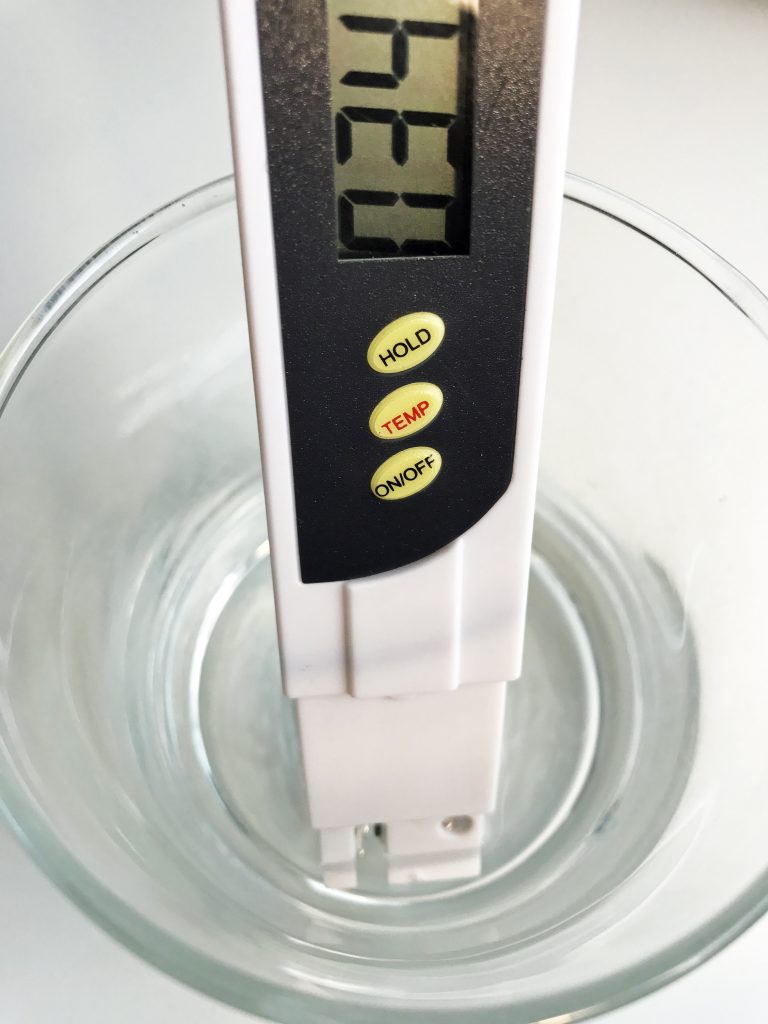 Place the bottom of the TDS into the water one at a time; A, then B, then C, then D.