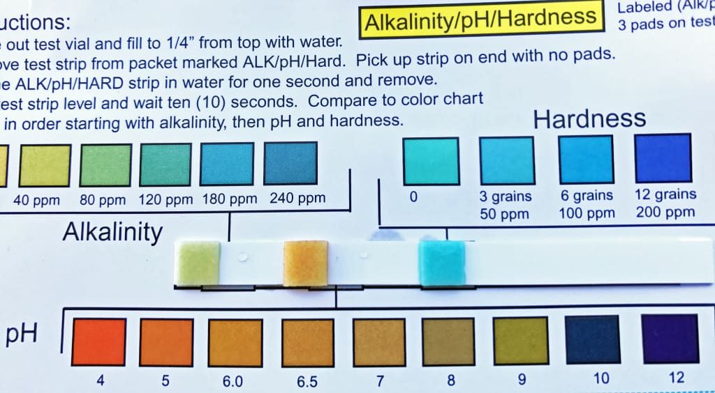 Now you are going to check the first fury bump on the left for Alkalinity, the middle fury bump for pH, and the last fury bump on the right, for Hardness.
