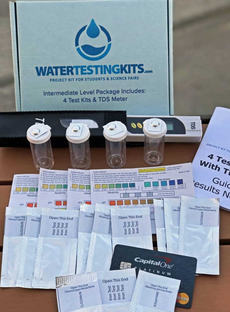 - Next thing you are going to do is to grab one of the four little plastic containers. Take the lid off. Fill it ¾ of the way with test water A.