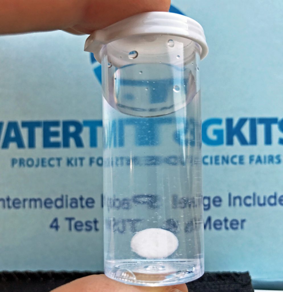 - What you’re going to do next, is to take that little white tablet and put it into a clean container that is filled with, yes you guessed it, ¾ full of water.